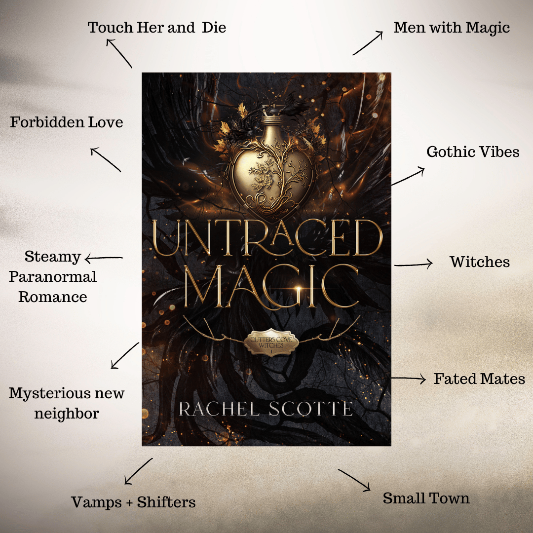 Untraced Magic is a cosy paranormal romance with spice, book one in a planned four book series. Each book follows a different couple and their story, but their tales interconnect and need to be read in order to avoid spoilers.